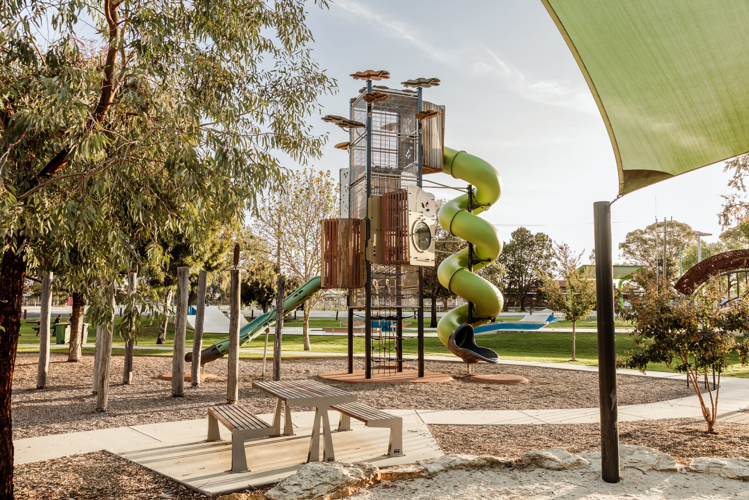 Luscious green lawns, sitting and BBQ areas, public toilets and playgrounds to suit all ages. The perfect place to relax while the kids explore, or enjoy a family picnic in the beautiful surrounds.